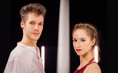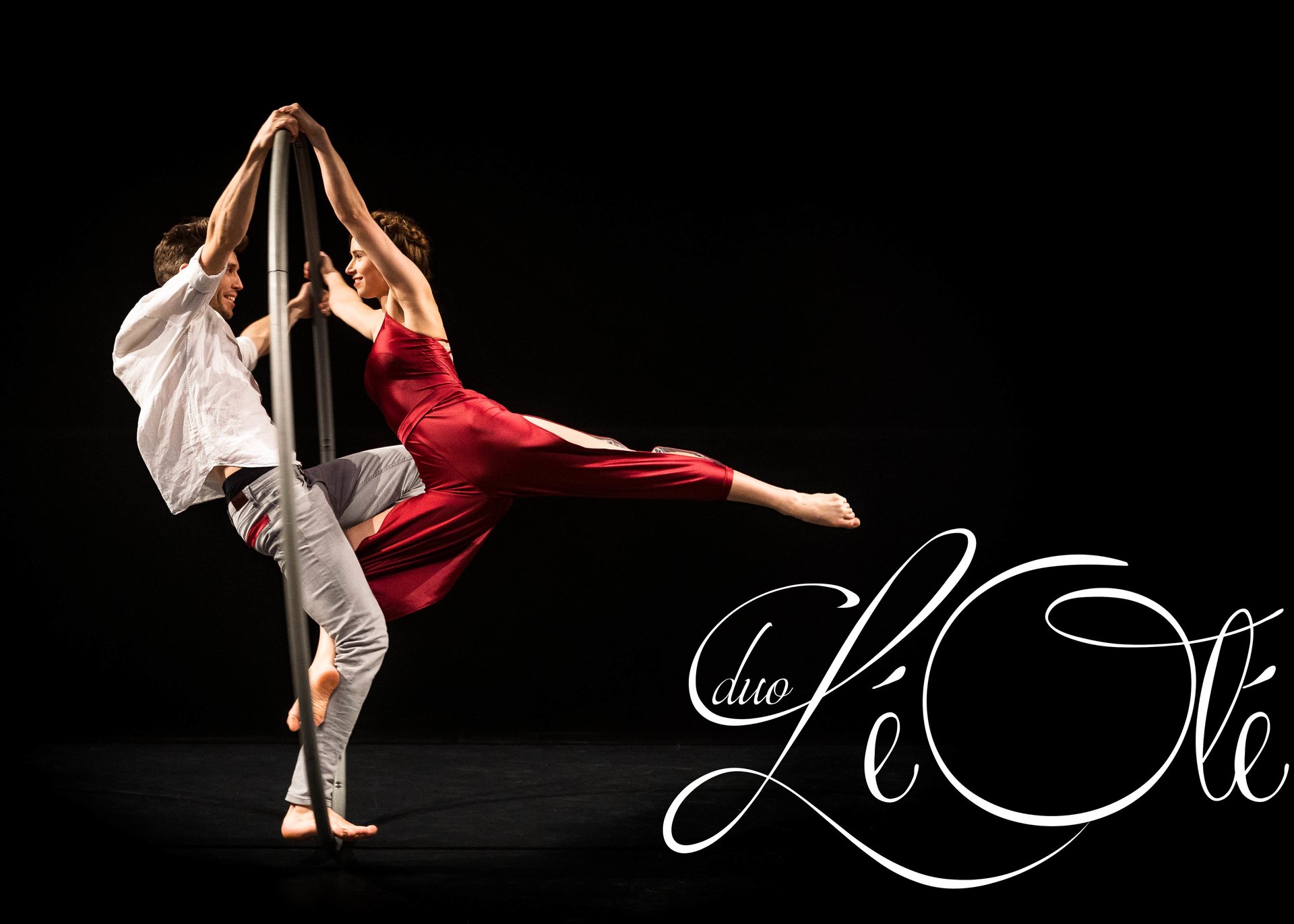 Ole and Leonie are two very different artists who share the same passion. The duo act showcases how different styles and movements in the same apparatus - the Roue Cyr - can be. In twirling and twisting acrobatic figures the duett presents contrast and harmony at once.